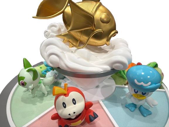 ポケモンセンターナゴヤでの名古屋城の金のシャチホコを意識した、金のコイキングの店内展示などその土地に合わせたポケモンセンターのデザインが見られます!